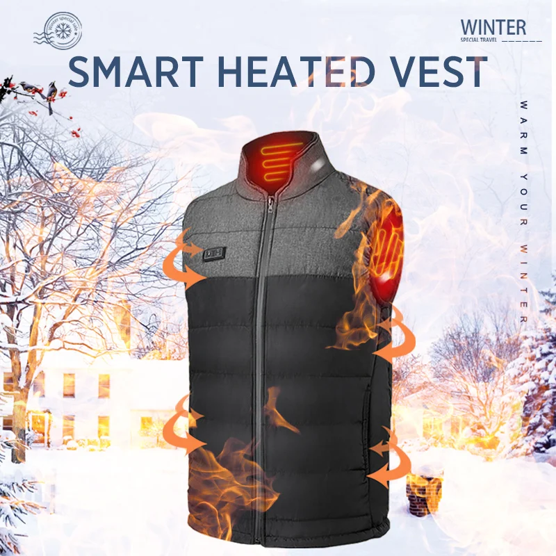 BEST Men winter outdoor Heated Vest USB heating waistcoat male battery Heated Jacket thermal camping hik
